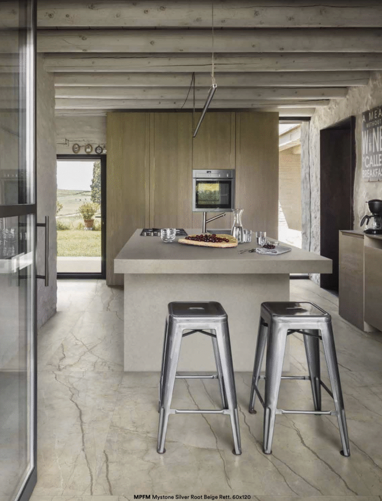 The depth and richness of natural stone come to life through vivid veining and highly realistic detailing, shaping indoor and outdoor spaces with a strong, unmistakable identity.