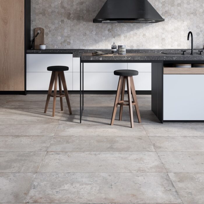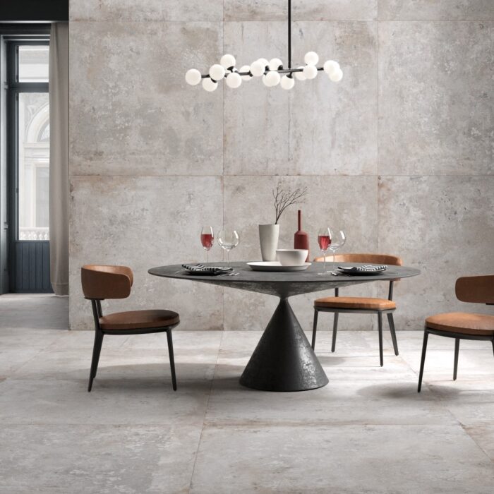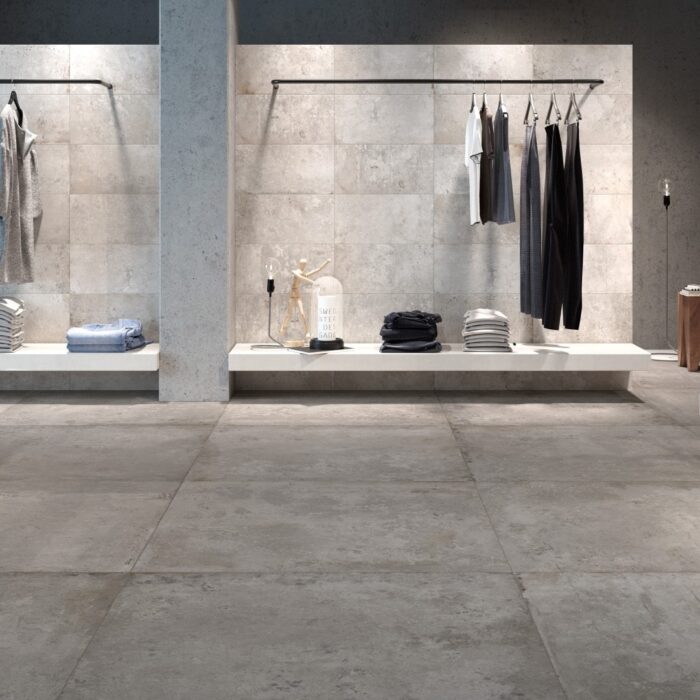 The Detriti ranges appearance recalls a distressed cement material, elegantly captured in stronger porcelain stoneware.