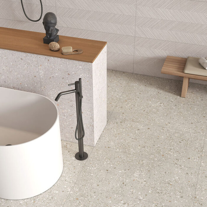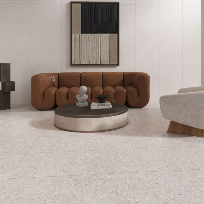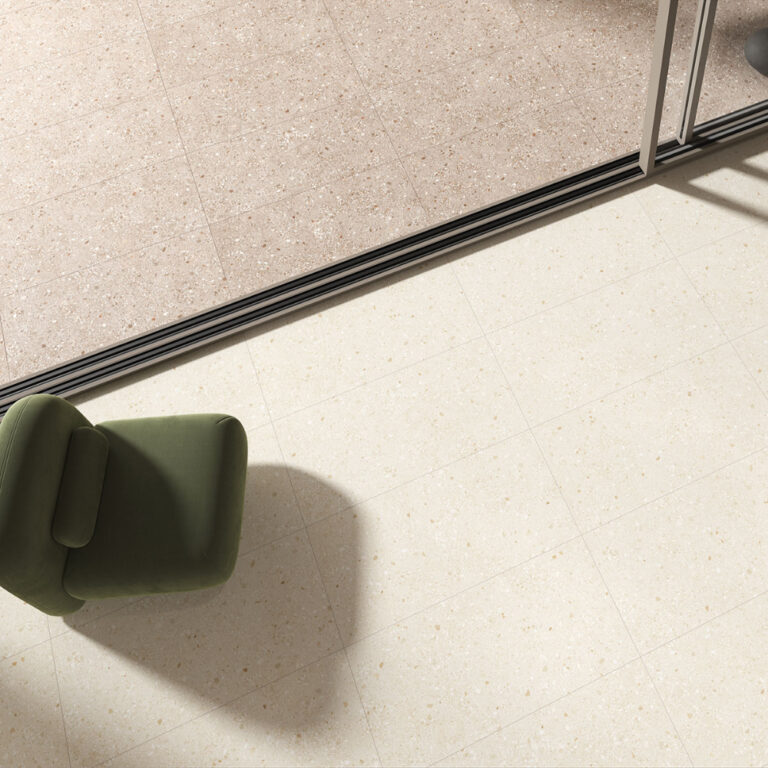 Terrazzo Charme offers a refined stone-effect porcelain tile collection inspired by the timeless charm of traditional terrazzo. Its even, natural tones bring an understated elegance, ideal for creating harmonious pairings or bold contrasts with the collection’s wide range of patterns that echo the rustic beauty of classic terrazzo tiles.