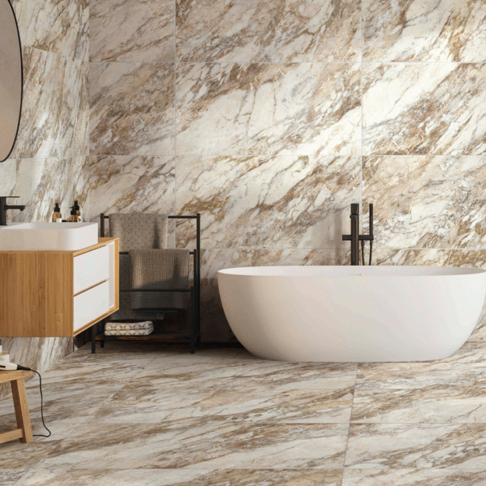 Romachia is a luxury marble-look porcelain tile range, blending elegance and versatility. Available in 2 ancient marble colour options and three sizes—60x120, 60x60, and 30x60—with an eye-catching 60x120 ‘Rigato’ lined decor option for feature walls. ( Click here)