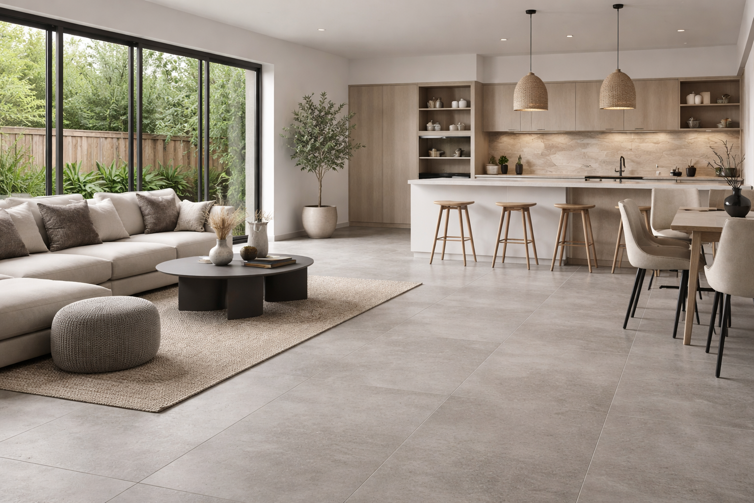 That’s where concrete-effect floor tiles fit naturally into modern homes. They offer the visual balance many people want, subtle, grounded, and neutral, without the practical drawbacks of poured concrete. Issues like cracking, sealing, and temperature discomfort simply don’t apply in the same way.
